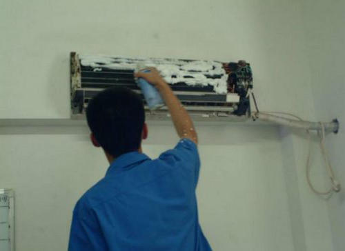 | 保定空调维修师傅给保定用户上门维修清洗空调。 |